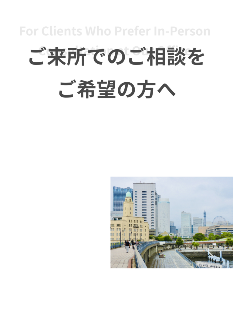 また、事務所の目の前には 山下公園 が広がり、落ち着きと品格を兼ね備えた環境の中でご相談いただけます。
