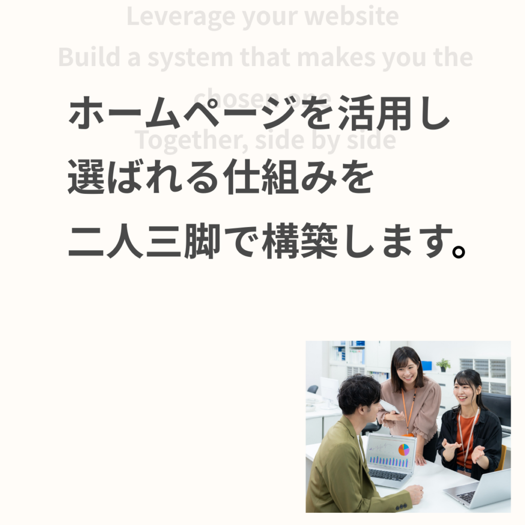 当サイトでは、情報提供からホームページ制作、集客導線の構築まで、士業・コンサルタント・各種専門家の皆様が「WEBから安定的に新規顧客を獲得できる仕組み」を作るための支援を行っています。